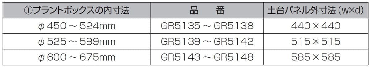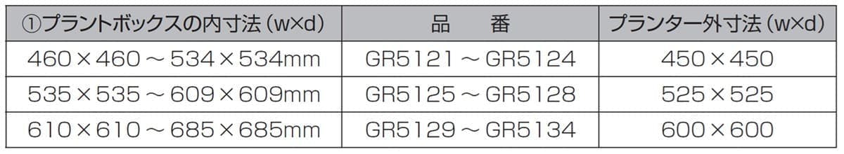 お手持ちのプラントボックスの寸法をご確認の上、下表の該当品番よりお選びください。