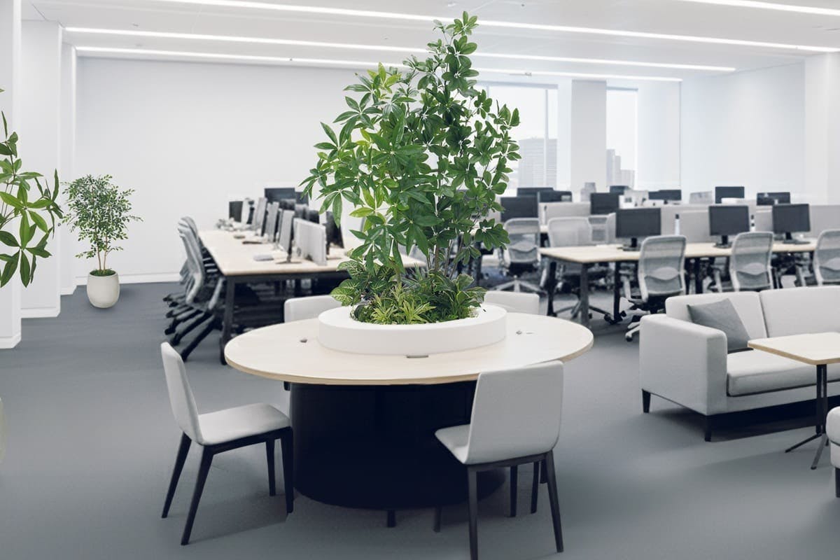 シンボルツリーとしてグリーンで見せ場を作ると空間の魅力がグッと上がります。休憩スペースやフリースペースなど、人が集まるシーンにおすすめです。