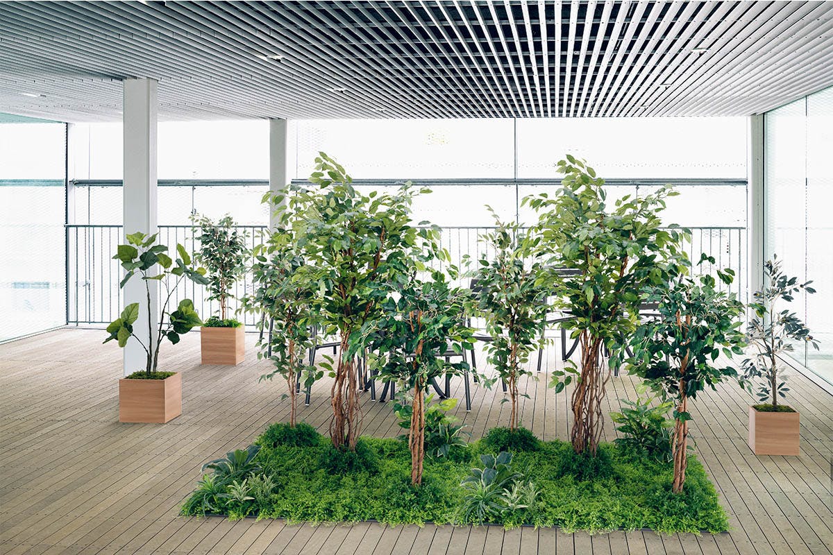 人工樹木を使いやすいデザインにした新しい設置スタイルです。単体で使ったり、連接したり、場に合わせてお使いください。